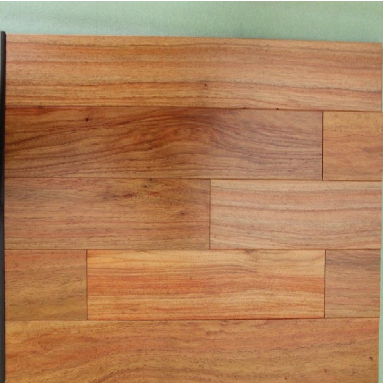 Паркет Лингуа из экзотических пород дерева. Общий тон пестроватый, цвет преимущественно желтовато-розовый, но могут встречаться планки уходящие в розовый и красный цвет.  Второе название данной породы «розовое дерево».